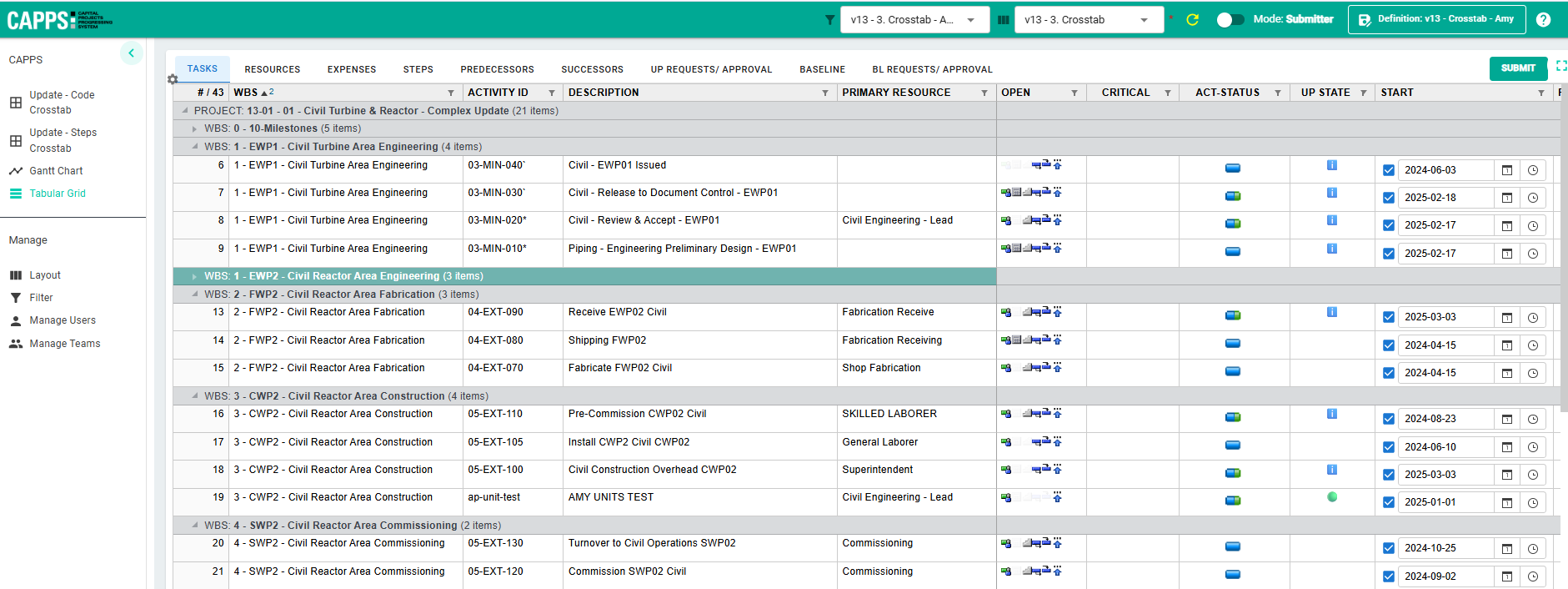 This new version introduces crosstab views, a Gantt chart tab, and Project Data Dashboards. Crosstab views are perfect for project managers, offering quick and easy activity and step progression that can even be done from your phone or mobile device. The Gantt chart allows for a complete view of your activities along a timeline, right from inside CAPPS. Finally, check out our new project data dashboards, built specifically for project managers.