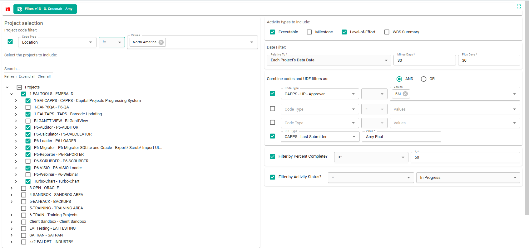 Some tasks are long and broken into steps. The steps crosstab allows a non-P6 project collaborator to give their inputs very quickly and efficiently. They can filter to reduce the steps visible and easily update on their phone, tablet, or laptop for submission. -
