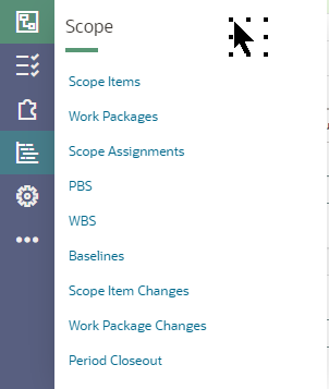 In Oracle Primavera Cloud (formerly Oracle Prime), you can create and track scope items, work packages, and WBS elements.