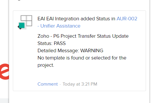 When a new client request comes in, you can create a project from ZOHO CRM. For us projects come in several categories and we have task list templates ready to be used to create tasks to charge to. Typically the first task list is Business Development. We kick off with that and assign the team working on the initiative. We can then send the project, the task list, the tasks and the resources into P6. We can do that in one step or two depending on the task list development. In this case we have a good idea of the scope of work and were able to put it together with 2 task lists. So we can integrate bot the project and the WBS/tasks and resources right away. So we use a really simple user interface tight in ZOHO projects to kick this off into P6. We tell the integration to send both the project and WBS over. Once that is done, we can go into P6 and start actionining the work. We also get a message letting us know if there were any issues with the intgration, such as a duplicate project exisiting. If all is good, you should get a PASS message both for the project and for the WBS.
