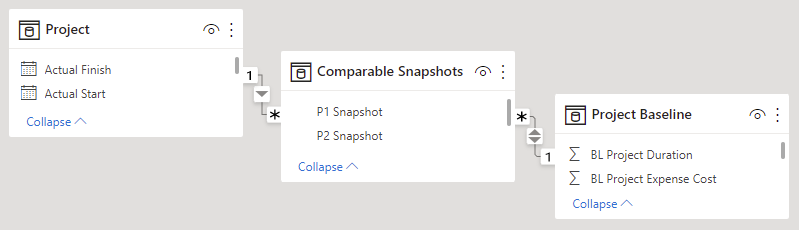 In the reporting software, the view is used to join projects with eligible baselines. Note: Project Baseline can simply be a copy of the projects table or another custom view which we’ll discuss further on.