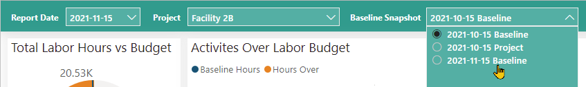 Now we can set up the report so the user can select the project plus report date and baseline they want to compare.
