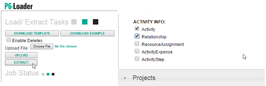1. I began by extracting information from my P6 project on the Module ACTIVITY INFO. I selected activity and relationship as shown in Fig.2. Once I selected my information and my project, I submitted my request and P6-Loader created an excel file with all of the requested P6 data in a matter of seconds.