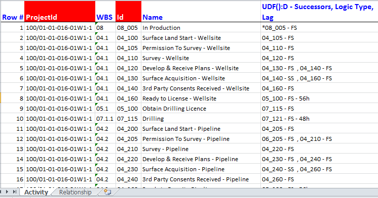 As you can see, the P6-loader helped me through a process that I thought could not be done. I was able to manipulate data in ways that are useful for project managers and project teams, while streamlining the process by getting all of the data organized in a timely and efficient manner. I was able to populate the user defined field for a project with approximately 30 activities and 40 relationships in less than 10 minutes.