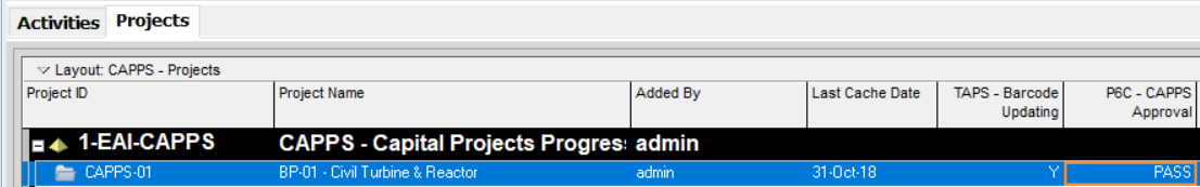 To make sure everything was entered correctly, go into P6 and go to the Project tab running the P6C – CAPPS Approval process. (Go is selected to run to process manually)