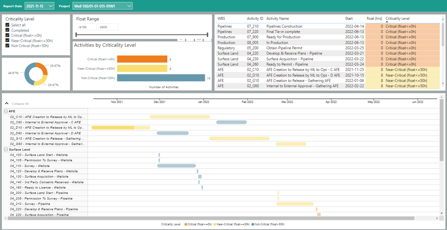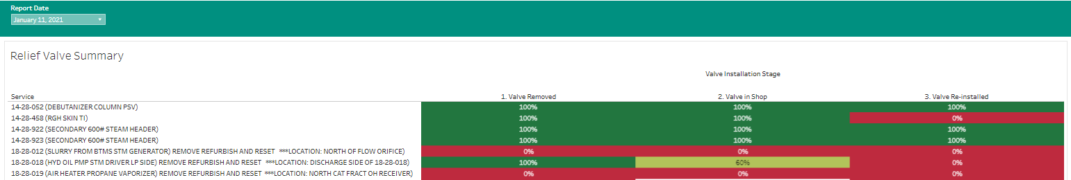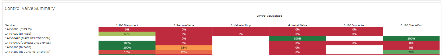 Although you may be tracking very different elements from those shown below in the sample Control Valve Summary report and Relief Valve Summary report, with a green up report configured to track items specific to your schedule you are streamlining not only your reporting but also your communications. Give your team easy to digest, easy to use self-serve dashboards using P6-Reporter reports.