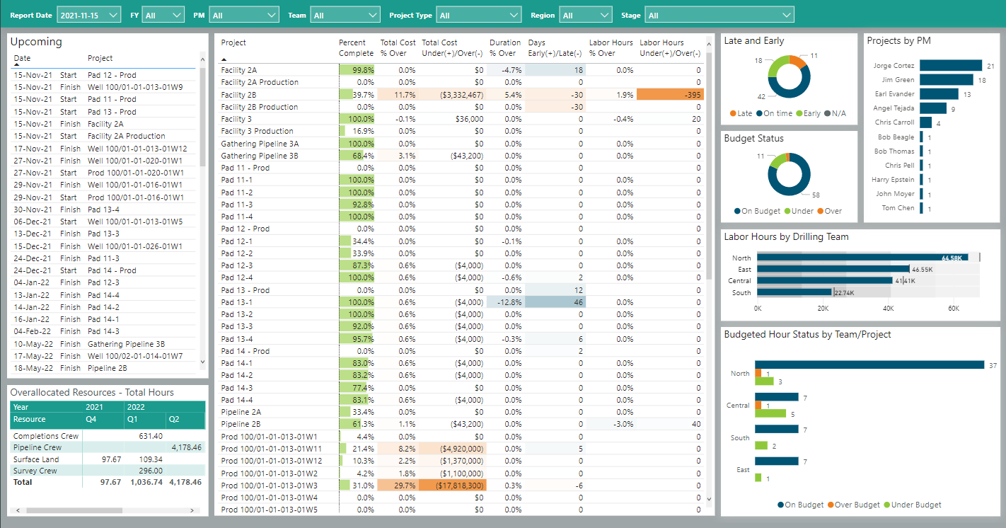 Regardless of the project type, streamlined reporting and communication is a positive. Provide your project teams with current, easy to digest, self-serve dashboards to assist with well informed, timely project decisions.