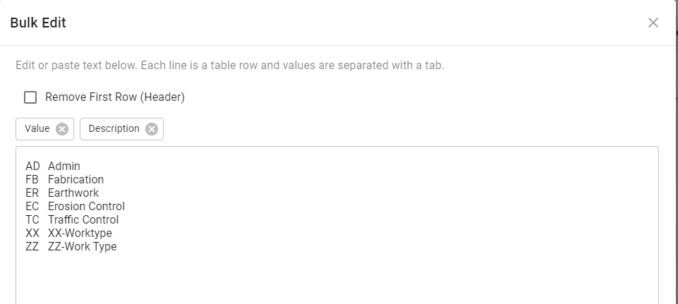 Adding code values may be done one at a time by clicking the + or values may be copied and pasted into the bulk add window.