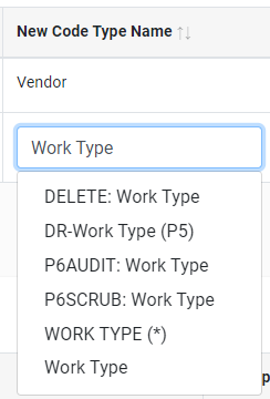 If you are using the Live version, you can select the code or code value from a pick list in the new name column.