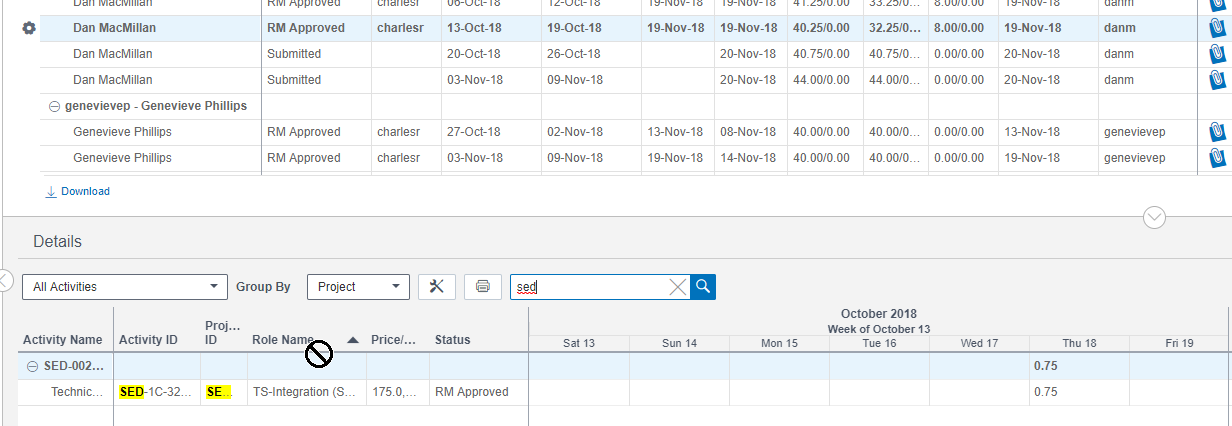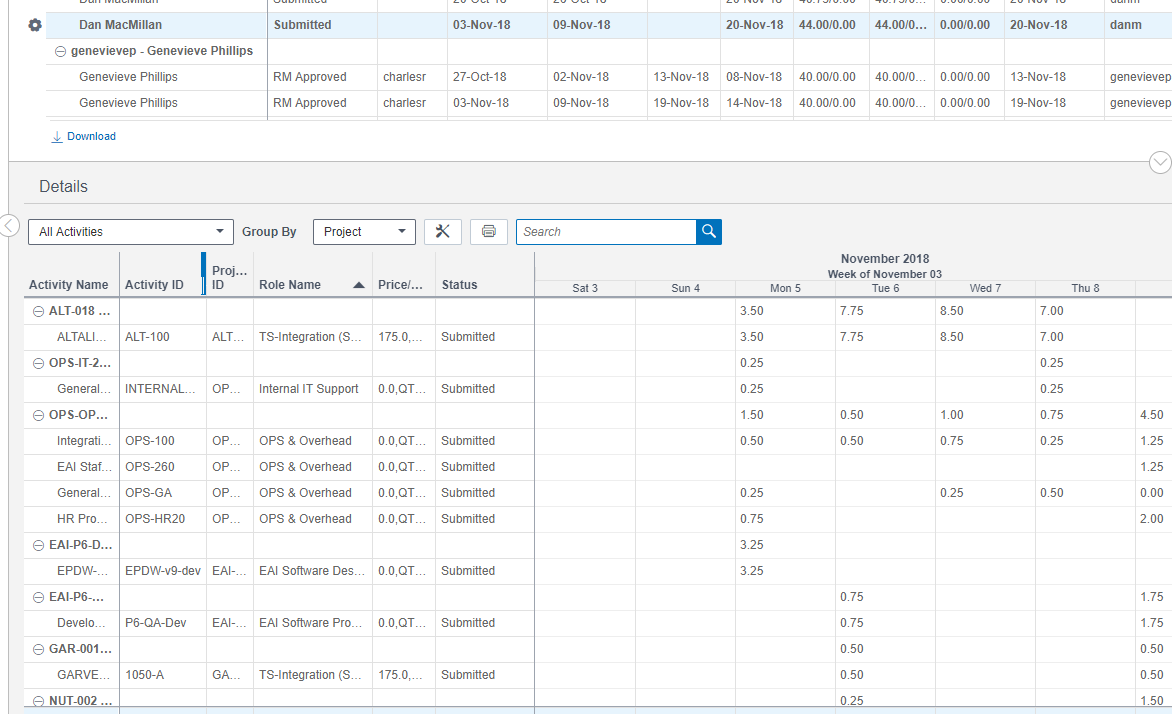 I simply pulled up the timesheets that have been submitted for our consultant, and I can search by project.