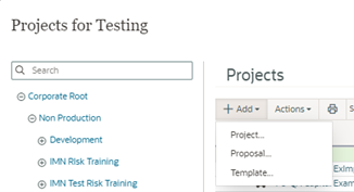 Click the Add drop down menu and select Project. Using this process, you can add a proposal or template if required.