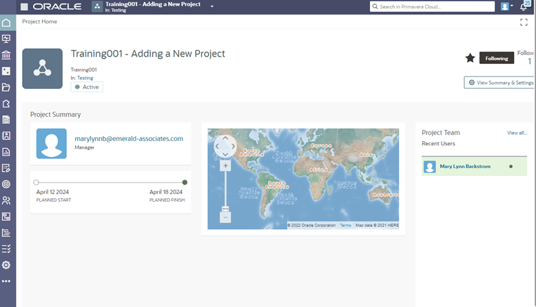 Oracle Primavera Cloud (OPC) - How to Create a Project Manually