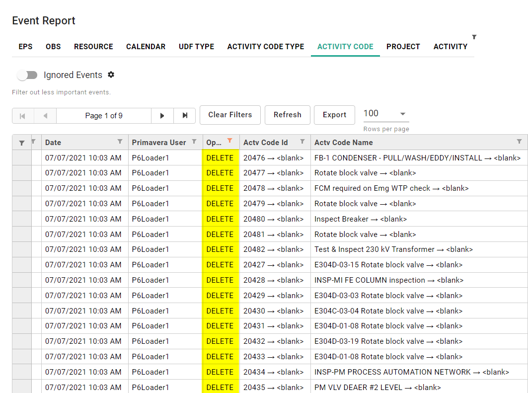 Let’s take a look at how to go about finding what has happened to an activity code that is no longer in our project that once contained values for the activity code.