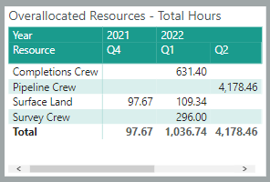 Over Allocated Resource Totals (Bottom left)