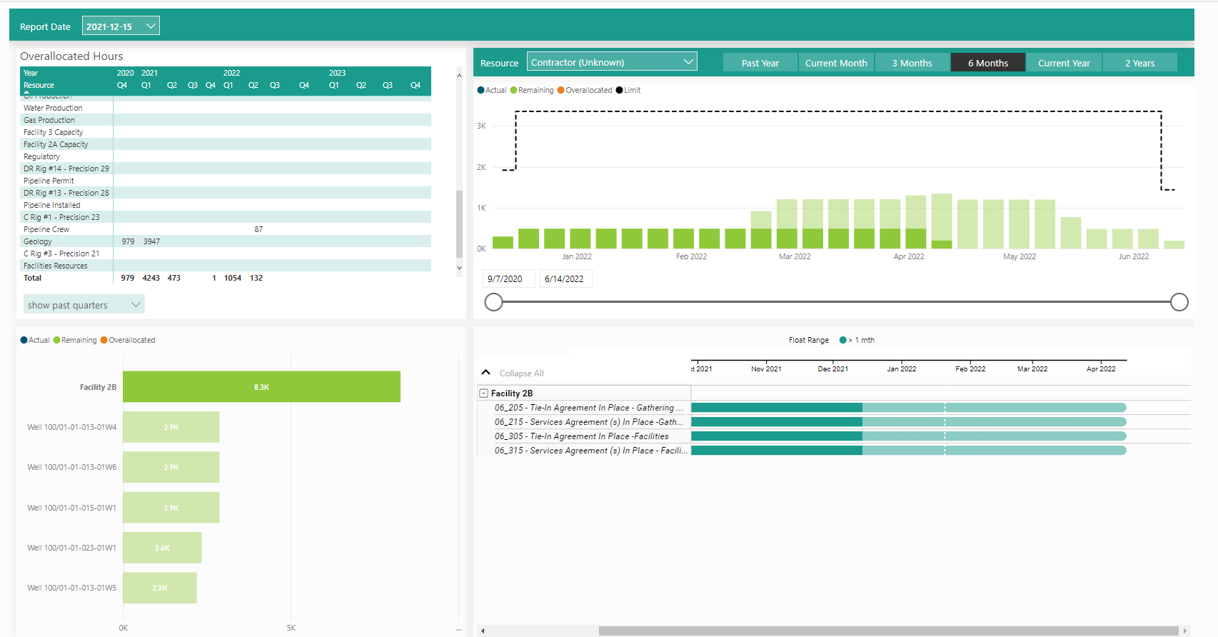 The resource dashboard provides access to additional views of resource information, filtered and selected/deselected to fit our requirements.