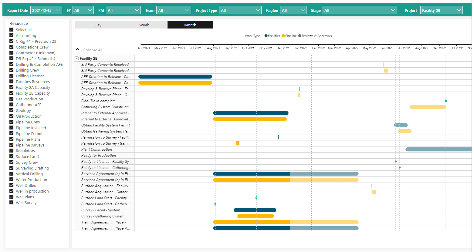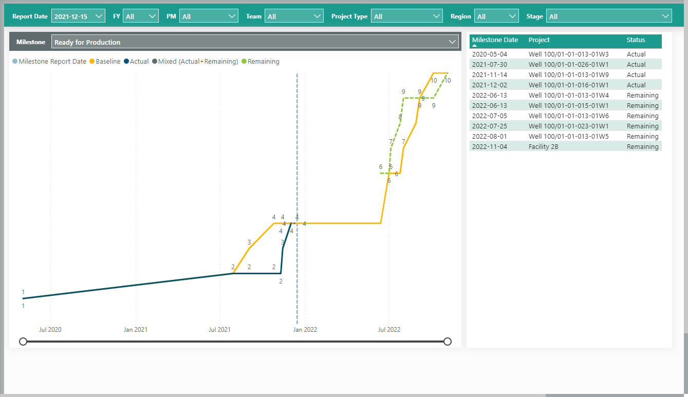 A quick change of the filter lets us slice and dice to review specific milestones, along with where they fall for specific projects.