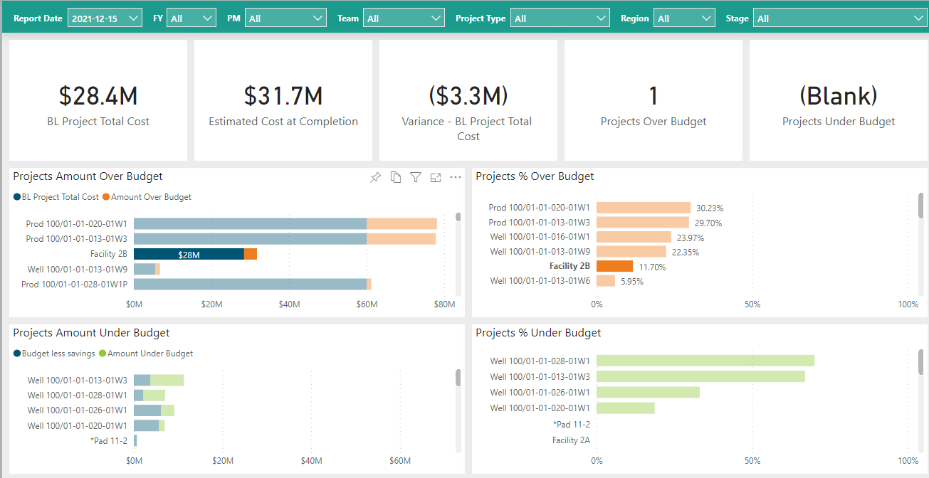 Are there specific elements creating this situation? We can continue with a deeper look into the portfolio at this point, or visit the self serve dashboard information available for individual projects. We will look at the project level dashboards shortly. First, let’s look further into the portfolio dashboard information.