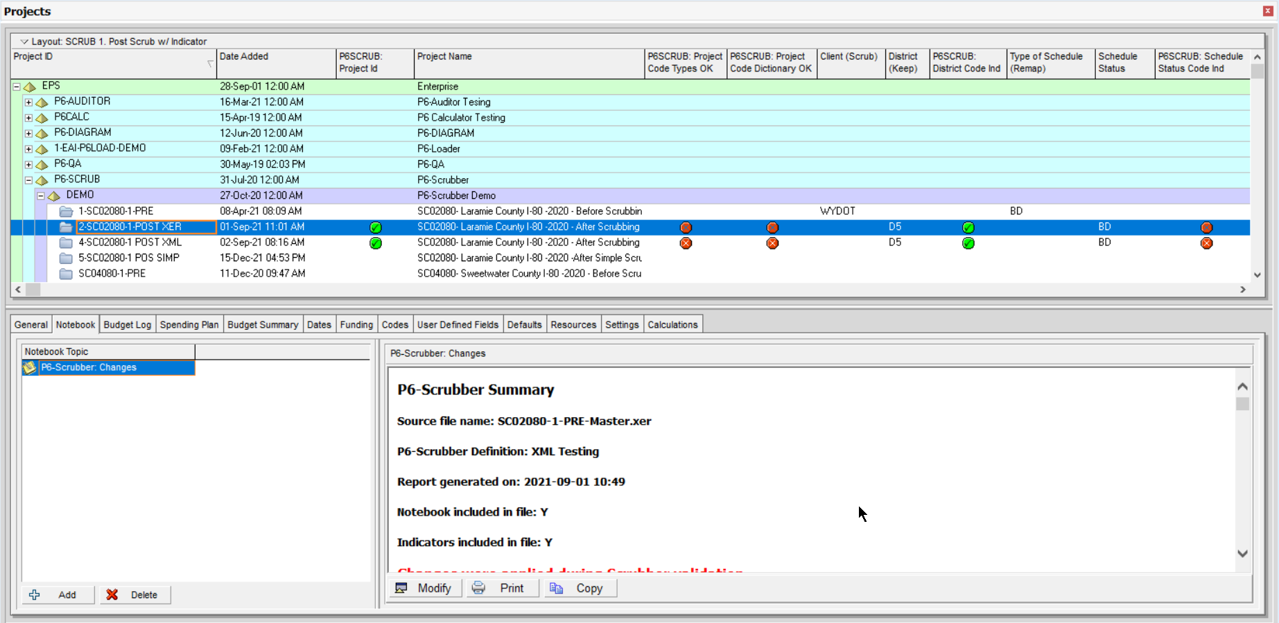 Once you import the file, you can display indicators in both the project and activity windows to easily show you what was changed or not changed in the imported (scrubbed) file. The report may also be created to display as a notebook on the project.