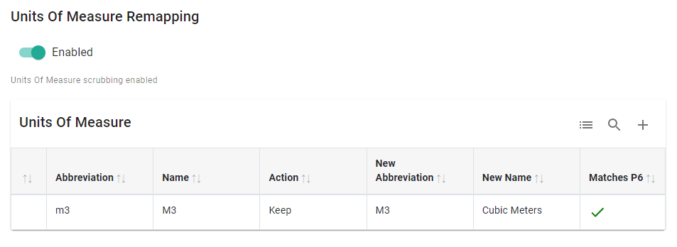 Units of Measure dictionaries can become unruly if you are creating different units that are the same but named differently. P6-Scrubber has the ability to remap units of measure to the abbreviation and name you already have defined in your P6 database.
