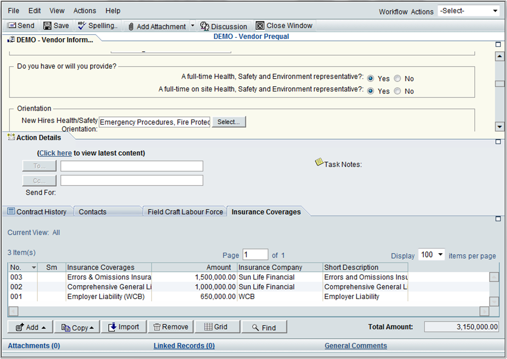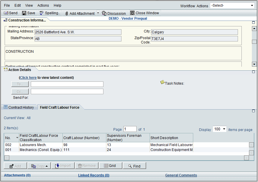 Here, the vendor pre-qualification request will once again be considered. The line items entered under the financial tab of the vendor pre-qual form should not be visible to the construction approval department. Setting this line item tab to hidden will ensure that this information remains confidential.