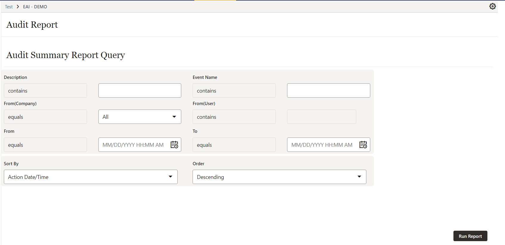 From (Company) - Specify the company whose actions you are looking to review. Once you specify the company, this will open up the ability to pick a specific user that you wish to see the actions of.