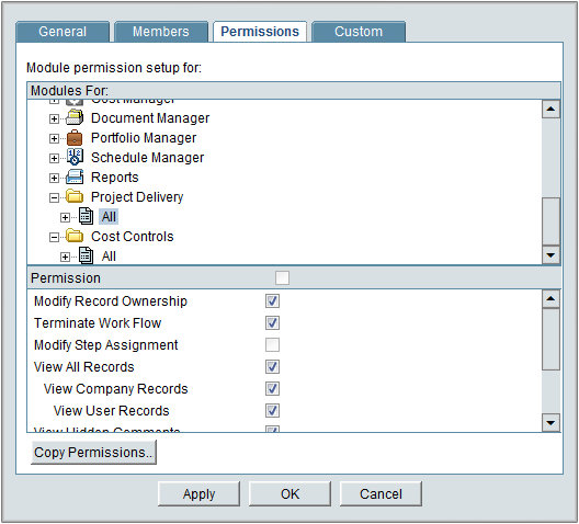 User permissions can be configured to allow each Unifier user access to specific areas of the software. This will allow administrators to delegate tasks to certain users and rollup necessary information to project and company administrators.