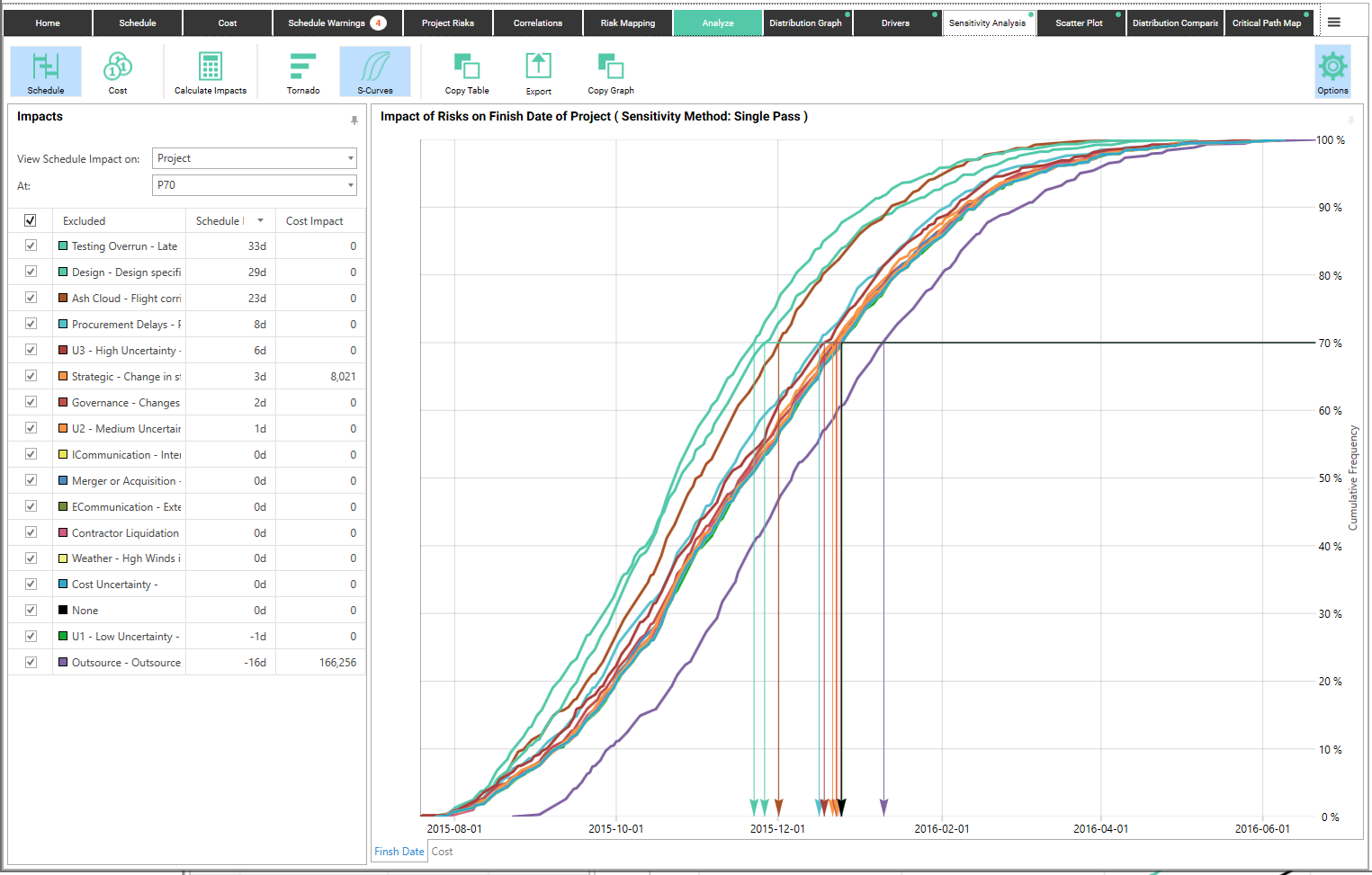 What they did was to take the risk model in OPRA, run it with all risks, and then turn off one risk at a time and rerun the model. Then they would compare each output either in the Distribution Analyzer or in Excel, so that they could report exactly how much impact each risk had on the project.