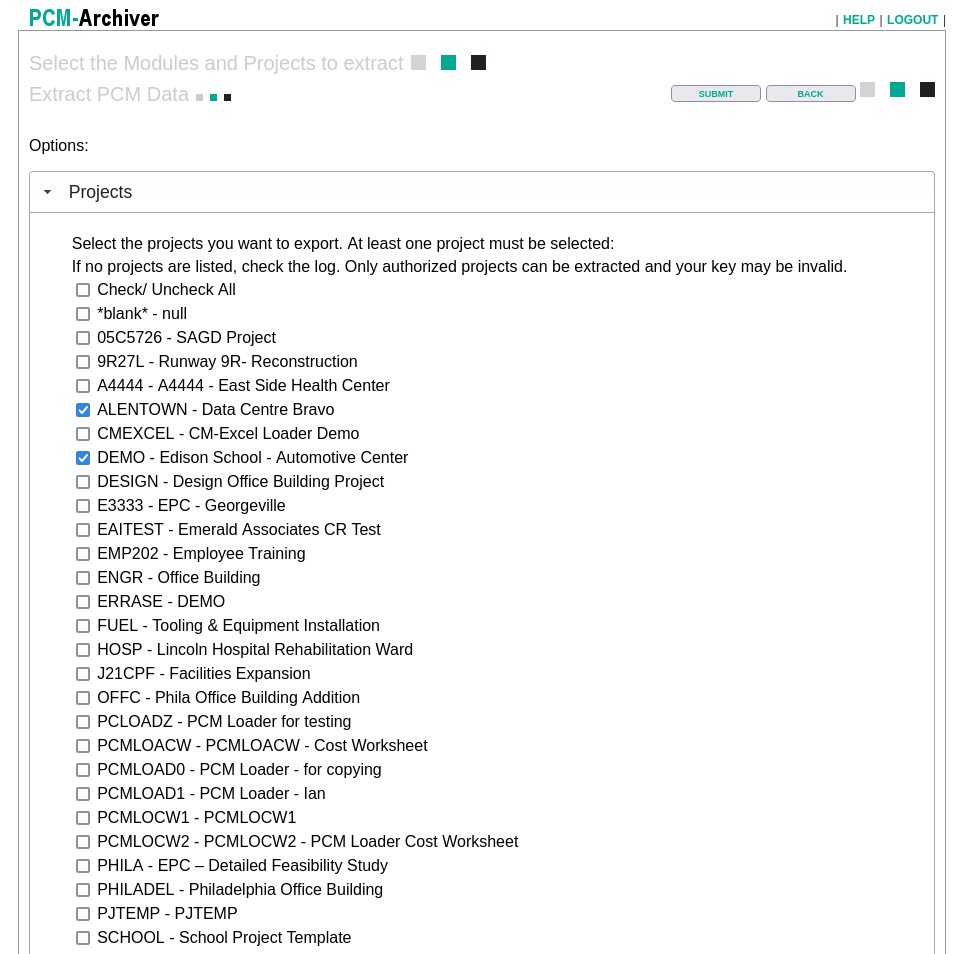 The PCM-Archiver is a web application that generates a PDF copy of all project documents and attachments and saves them as a Zip file for safe keeping, giving you peace of mind that no important data will be lost when cleaning up or deleting projects on your database. This tool makes it possible to backup entire projects, create detailed records of a vendor’s or contractor’s project history, or even create a snapshot of your database at a particular moment in time.