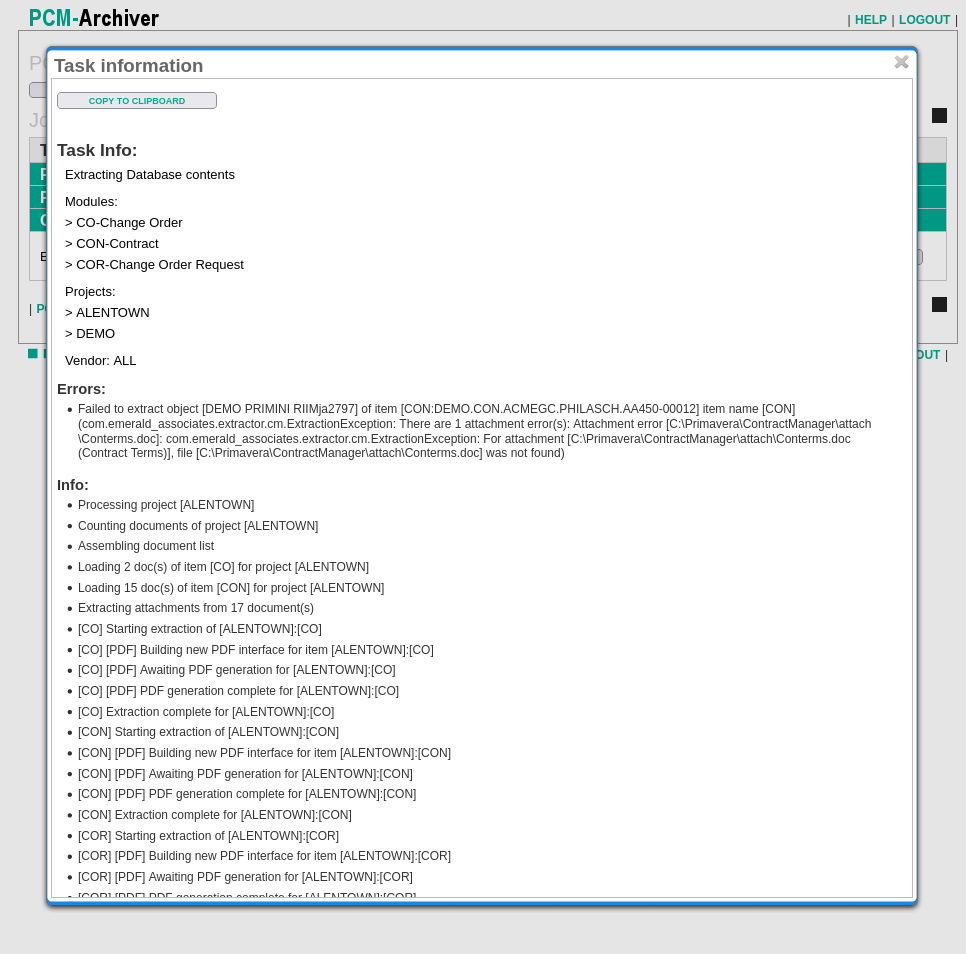 Over time your Primavera Contract Management (PCM) database can become disorganized and cluttered with old projects. Clean-up efforts can be tedious and time consuming, especially when projects or documents need to be removed but copies need to be made. PCM does have out-of-the-box archiving capabilities, but it does not include the ability to extract attachments, nor does it allow you to select information by vendor or module.