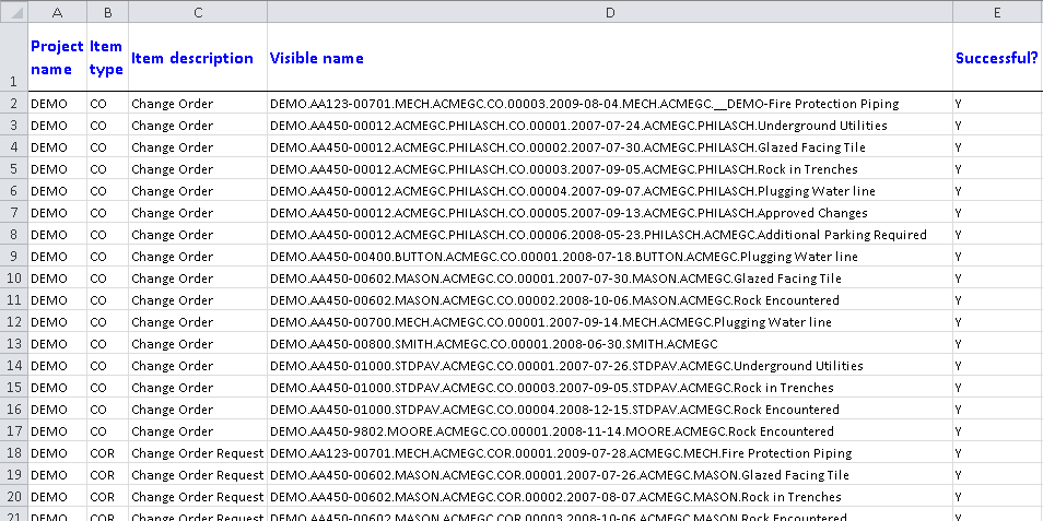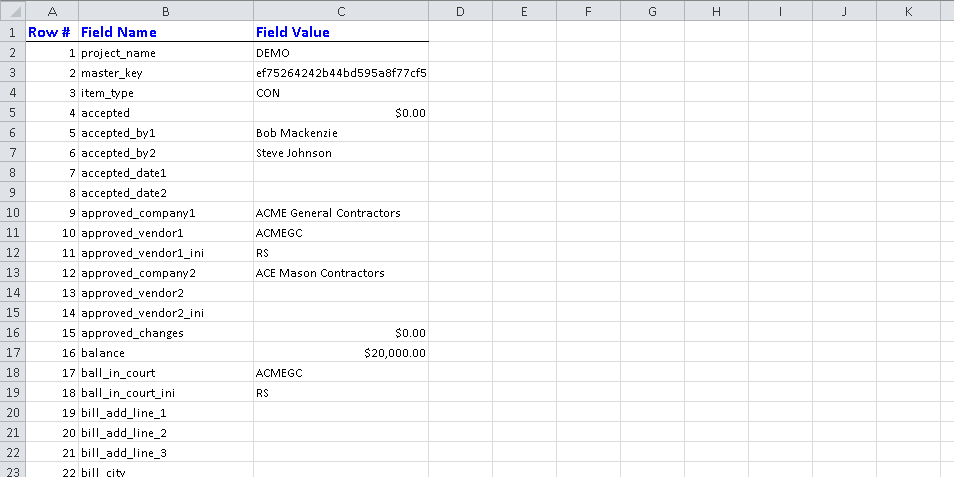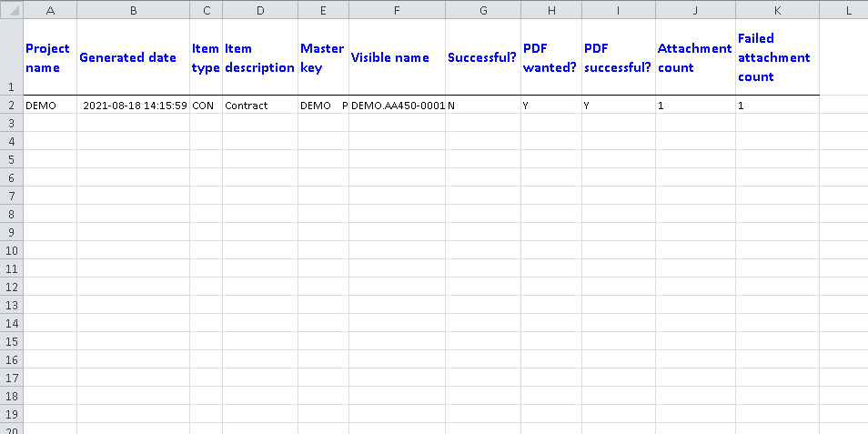 - The archive includes an Excel sheet for each archived document that includes all of the fields for the record, as well as any line items, issues, and costs.