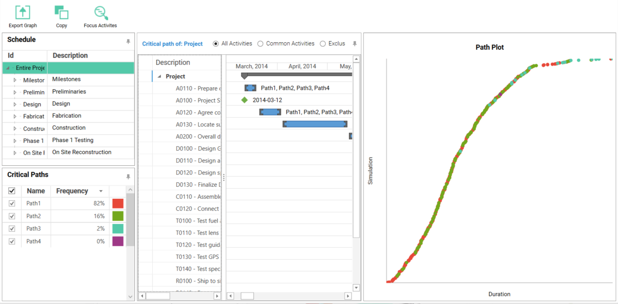 - Safran Risk allows a user to view the critical paths and how they change as risks are applied.