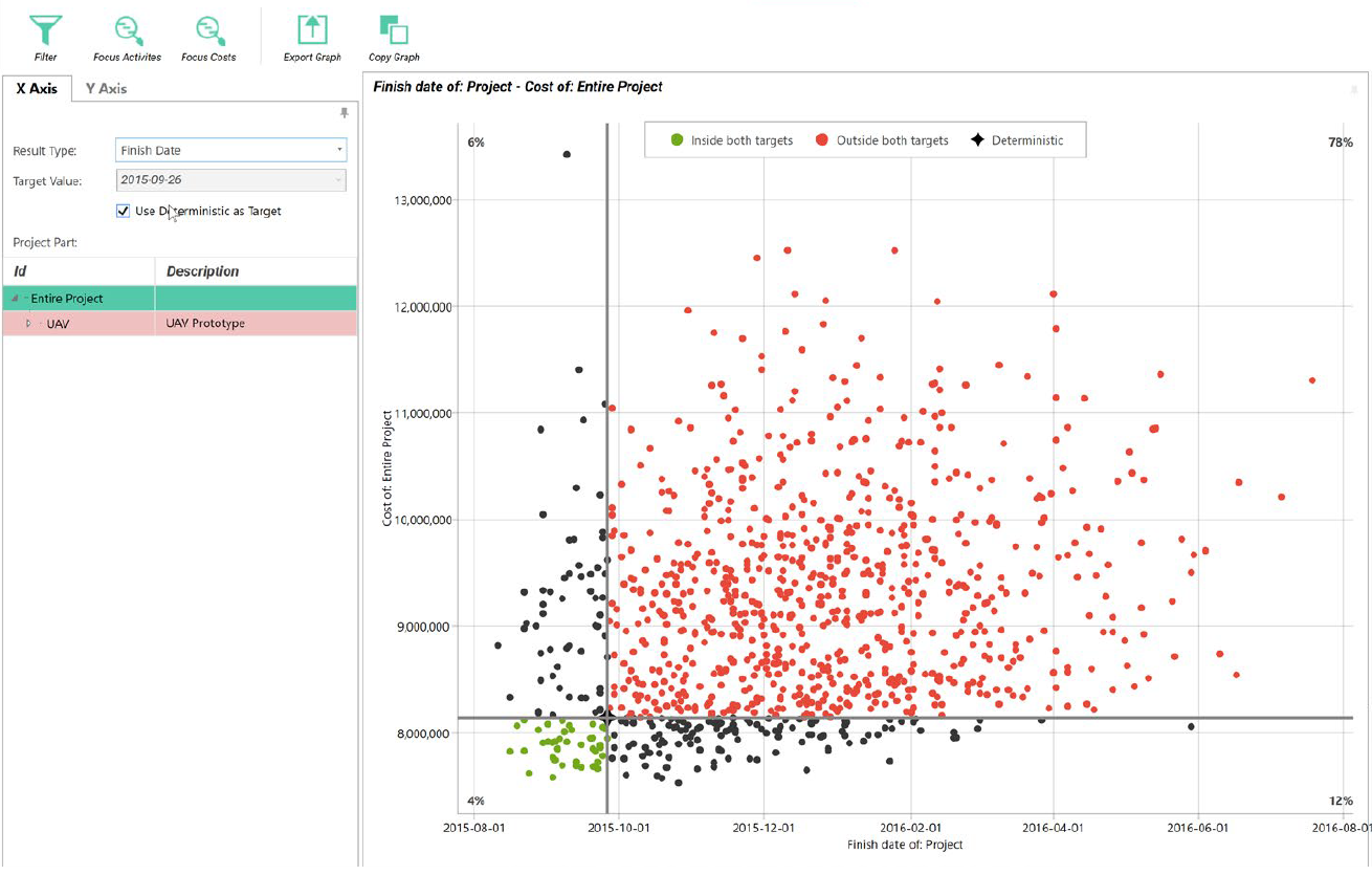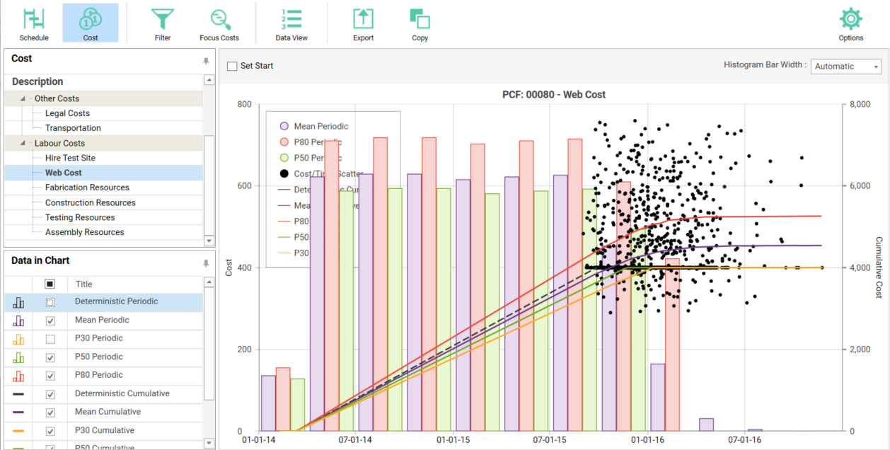 - Costs and schedule risk models are run at the same time, since they are often linked. Each results tab can be viewed for costs as well.