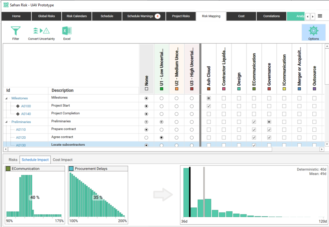 Safran Risk gives you access to robust, schedule risk and cost risk analysis together on one platform, for powerful integrated analysis and significant time and cost savings. Safran has a full range of risk features - from maintaining a simple list of risks in a spreadsheet to performing a detailed quantitative risk analysis for both schedule risk and cost risk. No more “translating” cost information into a format the schedule can understand.